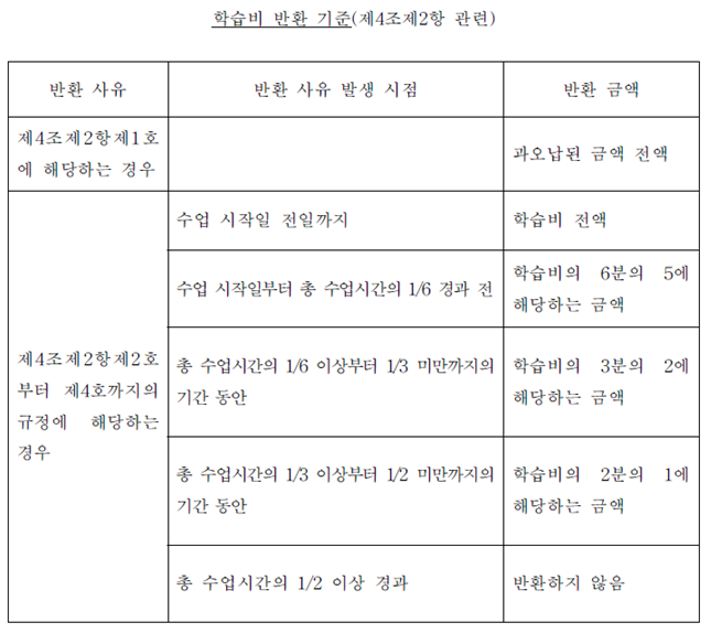 상단의 제4조 제2항 제1호는 학습비를 과오납한 경우를 말하며,